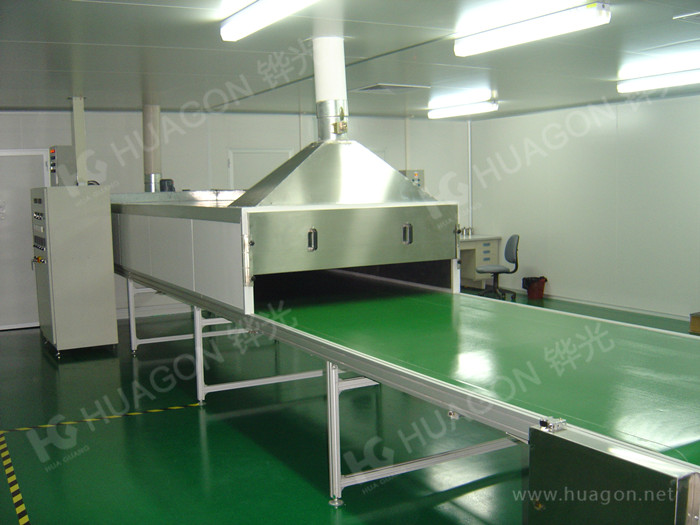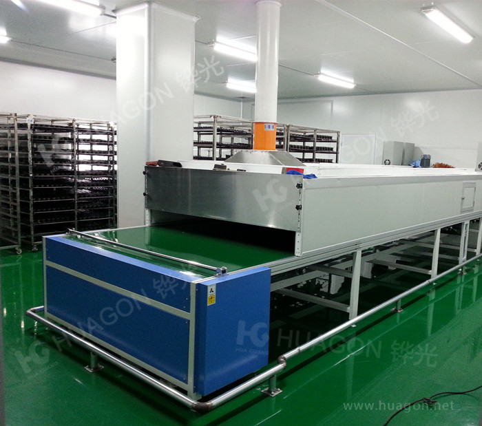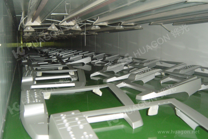 上料-手動(dòng)靜電除塵-素材預(yù)熱-多任務(wù)站手動(dòng)/自動(dòng)噴涂-靜置-隧道式烘烤-冷卻-下料
